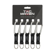 Made from lightweight aluminum material, durable, lightweight and practical.Multifunctional design, you can use to attach and carry keys, water bottles, flashlight or others camping gear.These carabiner buckles only can be used for hanging light weight stuff.SPECIFICATIONSNOT for climbingThickness 7mmLightweightEach carabiner has a general purpose ring5 pieces SETThe products are sold in a package of five and there is no possibility to buy individual pieces.When selecting a quantity, we recommend applying the addition in groups of five.In case of adding a quantity independent of the five, the final quantity will be adjusted by rounding.