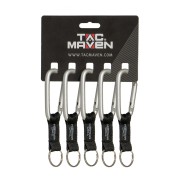 Made from lightweight aluminum material, durable, lightweight and practical.Multifunctional design, you can use to attach and carry keys, water bottles, flashlight or others camping gear.These carabiner buckles only can be used for hanging light weight stuff.SPECIFICATIONSNOT for climbingThickness 8mmLightweightEach carabiner has a general purpose ring5 pieces SETThe products are sold in a package of five and there is no possibility to buy individual pieces.When selecting a quantity, we recommend applying the addition in groups of five.In case of adding a quantity independent of the five, the final quantity will be adjusted by rounding.