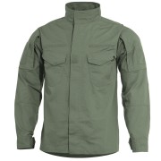 Features215Gsm 65% Polyester 35% CottonHigh density rip-stop fabricWater repellent coatingDual main zipper closure with Storm flap protectionTriple stitched on stress pointsRe-designed dual use Collar (Formal + Combat ready)Pleats on shoulders for ease of movementAdjustable back width for slimmer or wider fittingSlanted Main chest document pocketsEasy open Sleeve pockets with Hook n LoopErgonomic sleeves, easy roll upSleeve width regulationElbow re-enforcement protectionChest & Arm patches for insigniaIR cover patchAdjustable Cuff widthPen pocket opening on sleevesPocket configuration2 Xlarge (14*21cm) upper arm pockets with Hook n Loop patches and zipper opening2 Large (13*14cm) upper chest pockets with external flap closingWeight0.65 Kg (size Large)Pat. Design No.008190813-0005