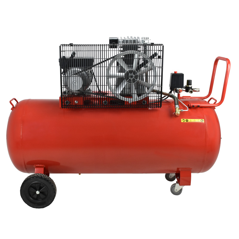 Επαγγελματικός αεροσυμπιεστής με ιμάντα, έχει δικύλινδρη ελαιολίπαντη κεφαλή, λειτουργεί σε χαμηλές στροφές, ψύχεται καλύτερα, έχει λιγότερες φθορές και είναι κατάλληλος για χρήση σε επαγγελματικές εφαρμογές.
