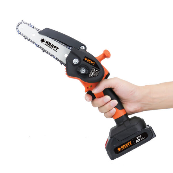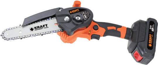 Το αλυσοπρίονο της KRAFT λειτουργεί με μπαταρία 21 volt, δεν παράγει καυσαέρια και μπορείτε να κινηθείτε ελεύθερα καθώς δεν εξαρτάται από καλώδια και πρίζες. Η διάρκεια εργασίας εξαρτάται από την μπαταρία και το πόσο φορτισμένη είναι. Με βάρος κιλά και μήκος λάμας 15cm, είναι ιδανικό για κλάδεμα δέντρων και σκάλισμα ξύλων.
