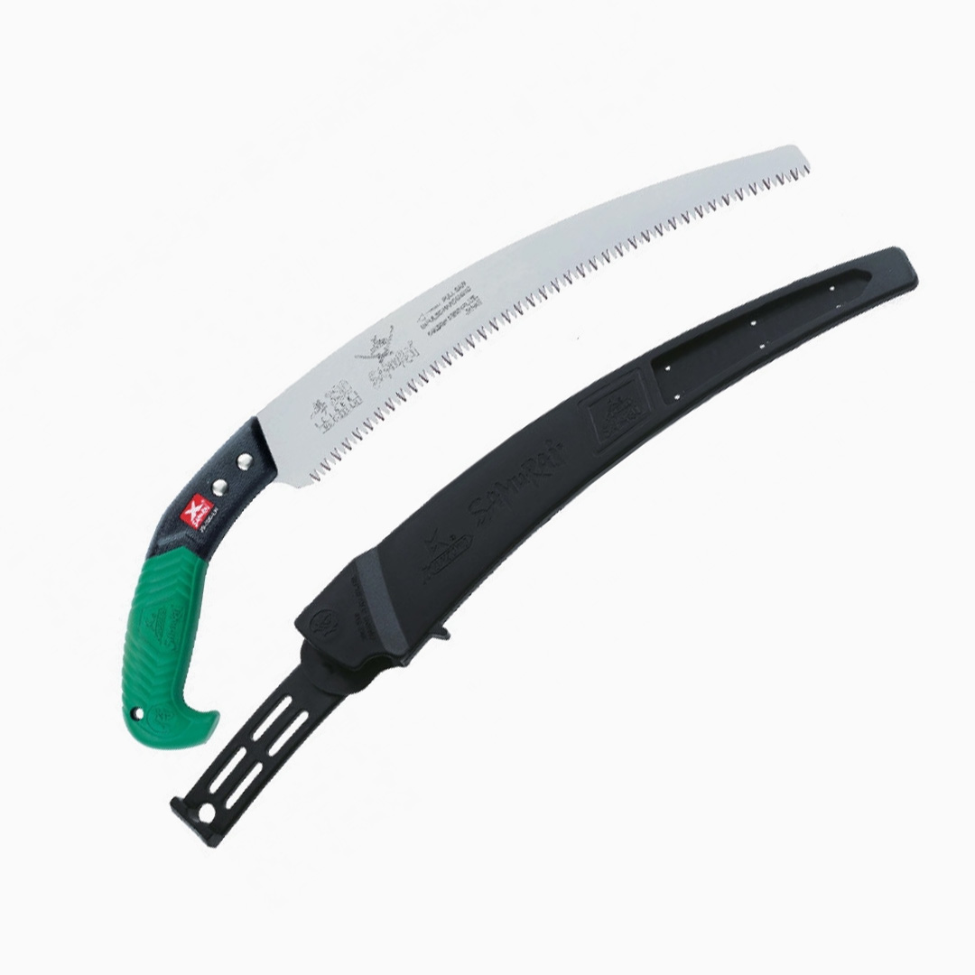 Πριόνι χειρός SAMURAΙ 330mm με κυρτή λάμα και θήκη ζώνης. Κατάλληλο για την κοπή και των πιο χοντρών κλαδιών. Η γυρισμένη λαβή εμποδίζει το πριόνι να φύγει από τα χέρι, ενώ η επένδυση καουτσούκ αποτρέπει το γλίστρημα ακόμα και όταν τα χέρια είναι ιδρωμένα.