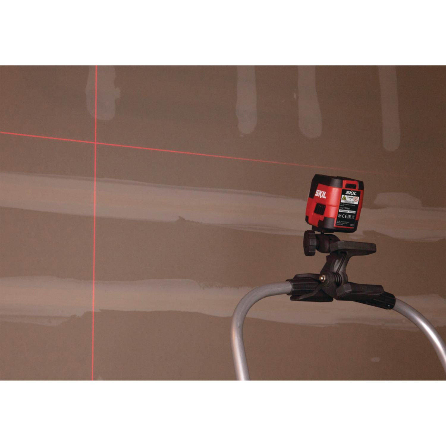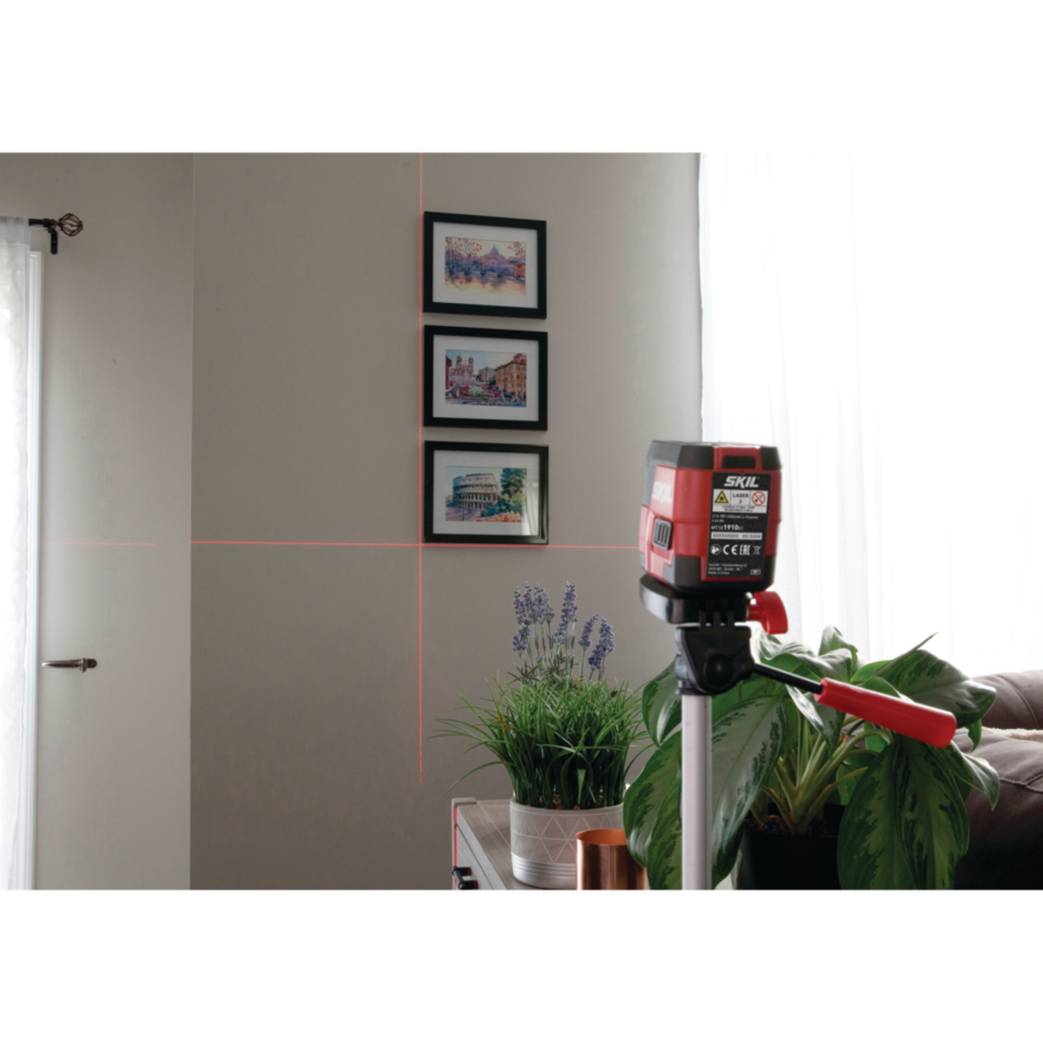 Αυτόματο αλφάδιασμα για γρήγορη και ακριβή εργασία χωρίς χειροκίνητη ευθυγράμμιση Προβολή μιας διασταυρούμενης με ακρίβεια οριζόντιας και κάθετης ακτίνας laser Ενσωματωμένη μπαταρία ιόντων λιθίου που φορτίζεται εύκολα, μέσω της ενσωματωμένης θύρας φόρτισης micro USB Ένδειξη στάθμης της μπαταρίας Σπείρωμα 1/4″ για τρίποδο Ονομαστική τάση: 230 V | 50 Hz Αριθμός γραμμών: 1 οριζόντια | 1 κάθετη Ακρίβεια: ± 0,5 mm/m Εύρος αυτοαλφαδιάσματος: ± 4° Μέγ. εύρος λειτουργίας: 15 m Χρόνος λειτουργίας: 16 h Θερμοκρασία λειτουργίας: – 5℃ έως +40℃ Κατηγορία laser: 2 Διαστάσεις (ΜxΠxΥ): 71x61x77 mm Βάρος: 0,3 kg