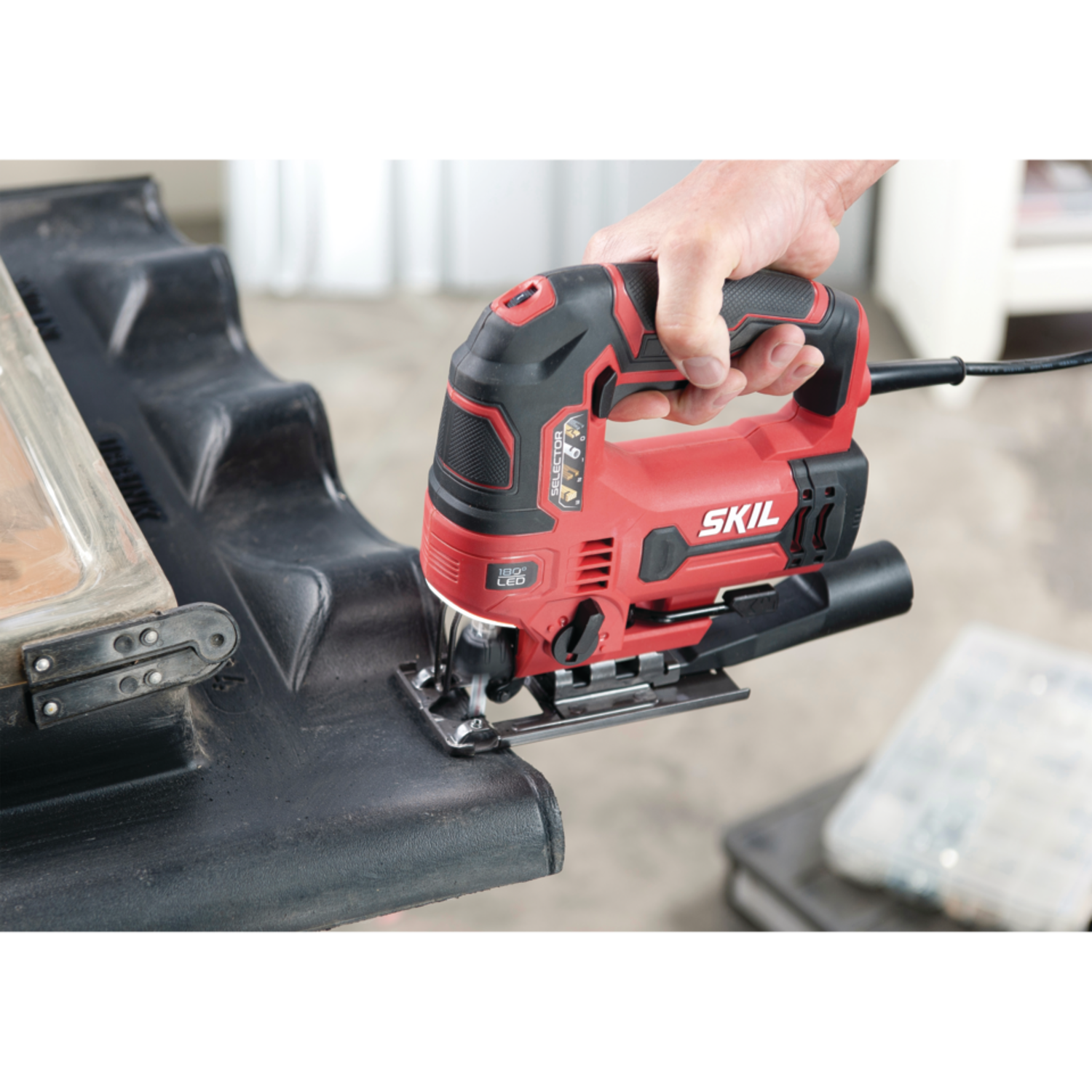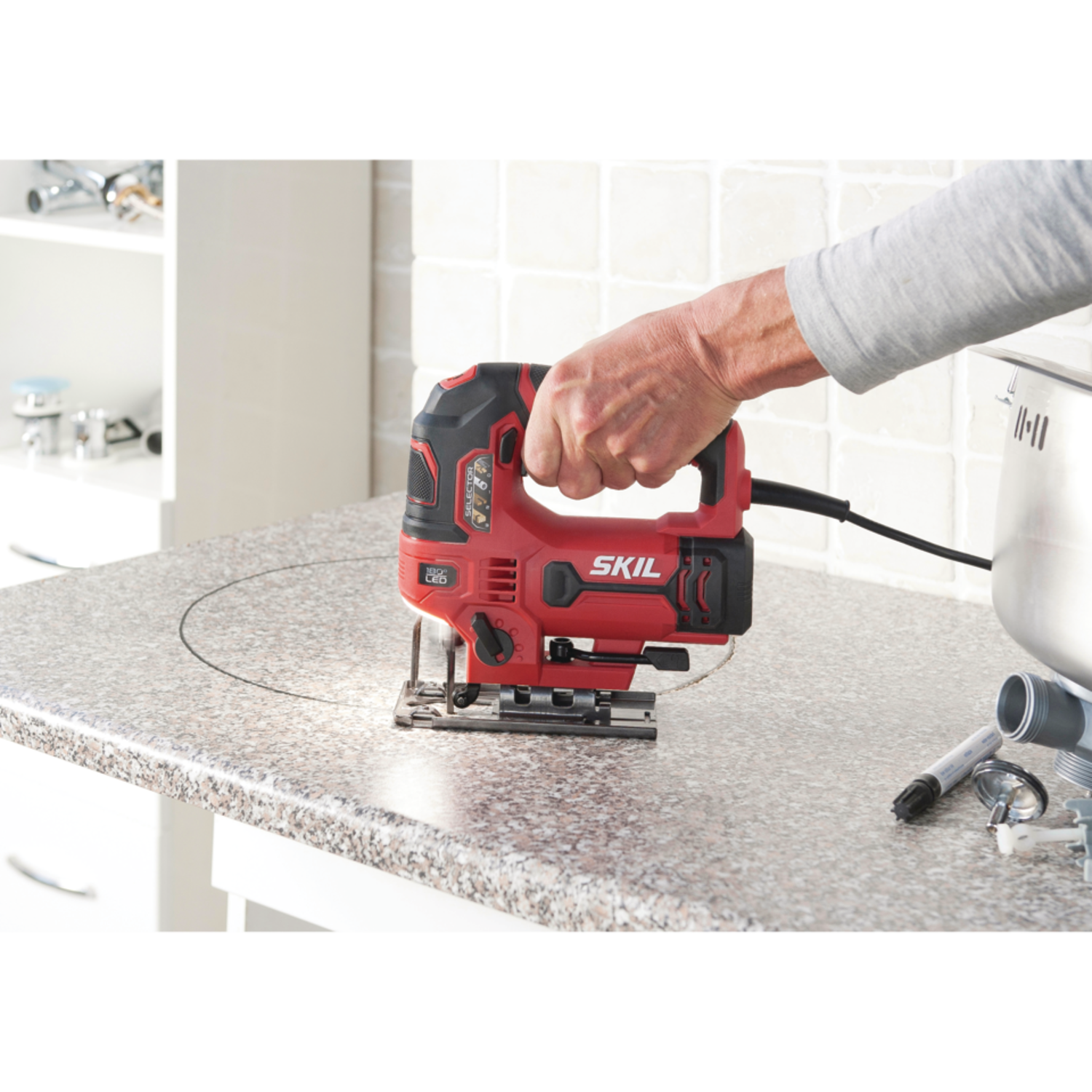Mεταβολή ταχύτητας και ταλάντωσης για υψηλής ακρίβειας κοπές σε διάφορα υλικά Γρήγορη και εύκολη αλλαγή πριονόλαμας με το σύστημα Clic, χωρίς εργαλείο Διακόπτης για το φύσημα της σκόνης για διατήρηση καλής ορατότητας της γραμμής κοπής Αντιολισθητική λαβή για καλύτερο και πιο άνετο κράτημα Ονομαστική τάση: 230 V | 50 Hz Ισχύς: 550 W Αριθμός παλινδρομήσεων: 0 – 3.000 min⁻¹ Μήκος διαδρομής: 18 mm Σκάλες ταλάντωσης: 4 Ρύθμιση κλίσης: 0 – 45° Α / Δ Μέγ. βάθος κοπής – Ξύλο: 75 mm Μέγ. βάθος κοπής – Χάλυβας: 6 mm Μέγ. βάθος κοπής – Αλουμίνιο: 12 mm Καλώδιο: 2,7 m Βάρος: 2,1 kg